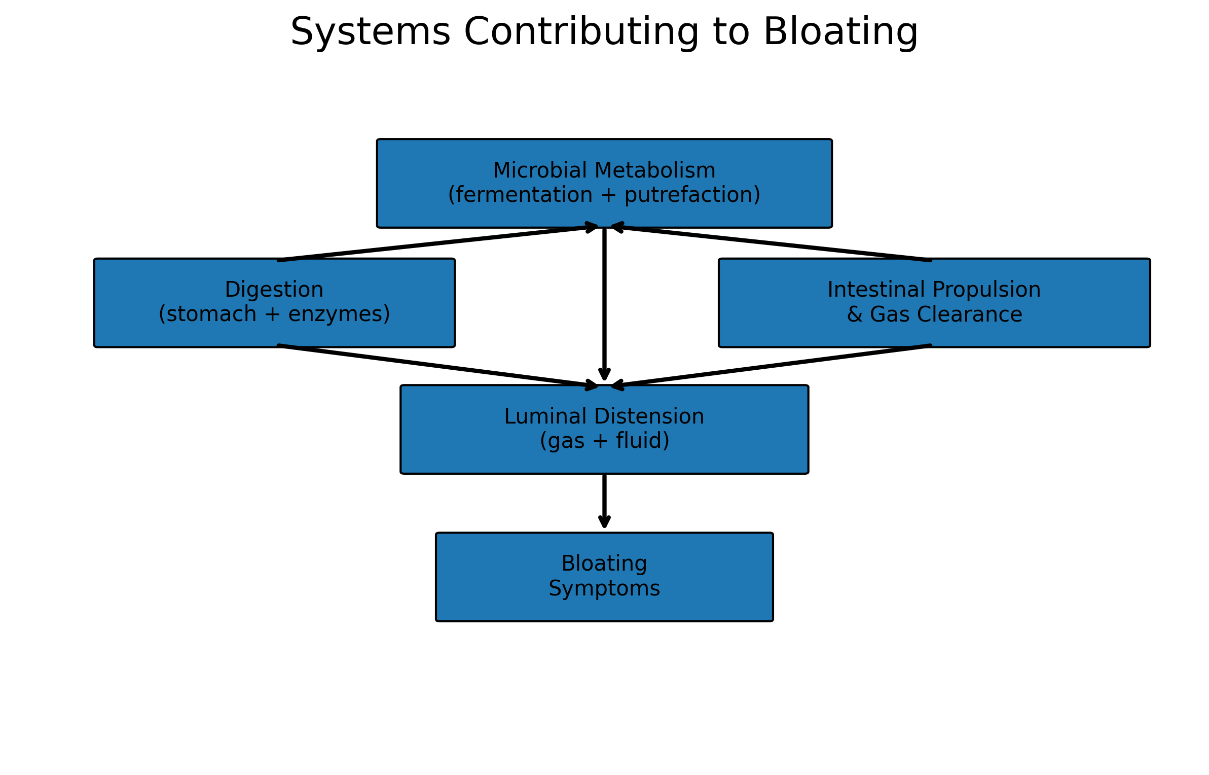 Because these processes influence one another, symptoms such as bloating frequently arise from a combination of factors rather than a single mechanism.